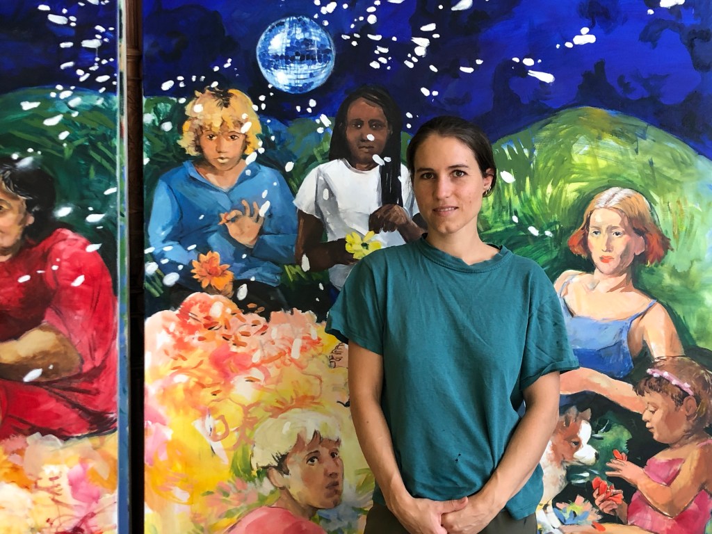 Sidonie Bilger with one of her recent paintings. Photo by Janet Hulstrand.