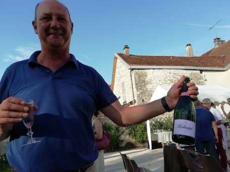 Philippe Talbot, deputy mayor of Essoyes, serving champagne.
