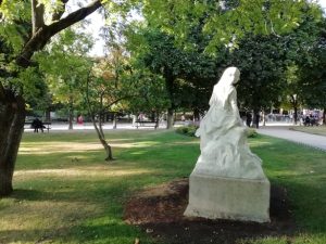One of my favorite things to do after visiting the Red Wheelbarrow (and almost inevitably leaving there with at least one new book) is to go into the Luxembourg Gardens and sit near the sculpture of George Sand, or by the bandshell that is not far from there: where I settle in to read happily, surrounded by others reading, enjoying that lovely favorite activity of Parisians: reading and people-watching in the parks and cafes of the city…