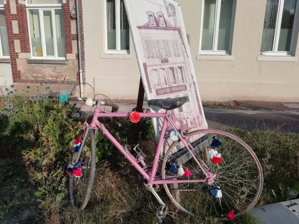 In Essoyes, pink bicycles beautifully decorated with handmade crepe paper flowers, and crepe paper flowers gracing the grillwork and the bridges over the Ource River, helped point the way for the cyclists to make their several turns through town.