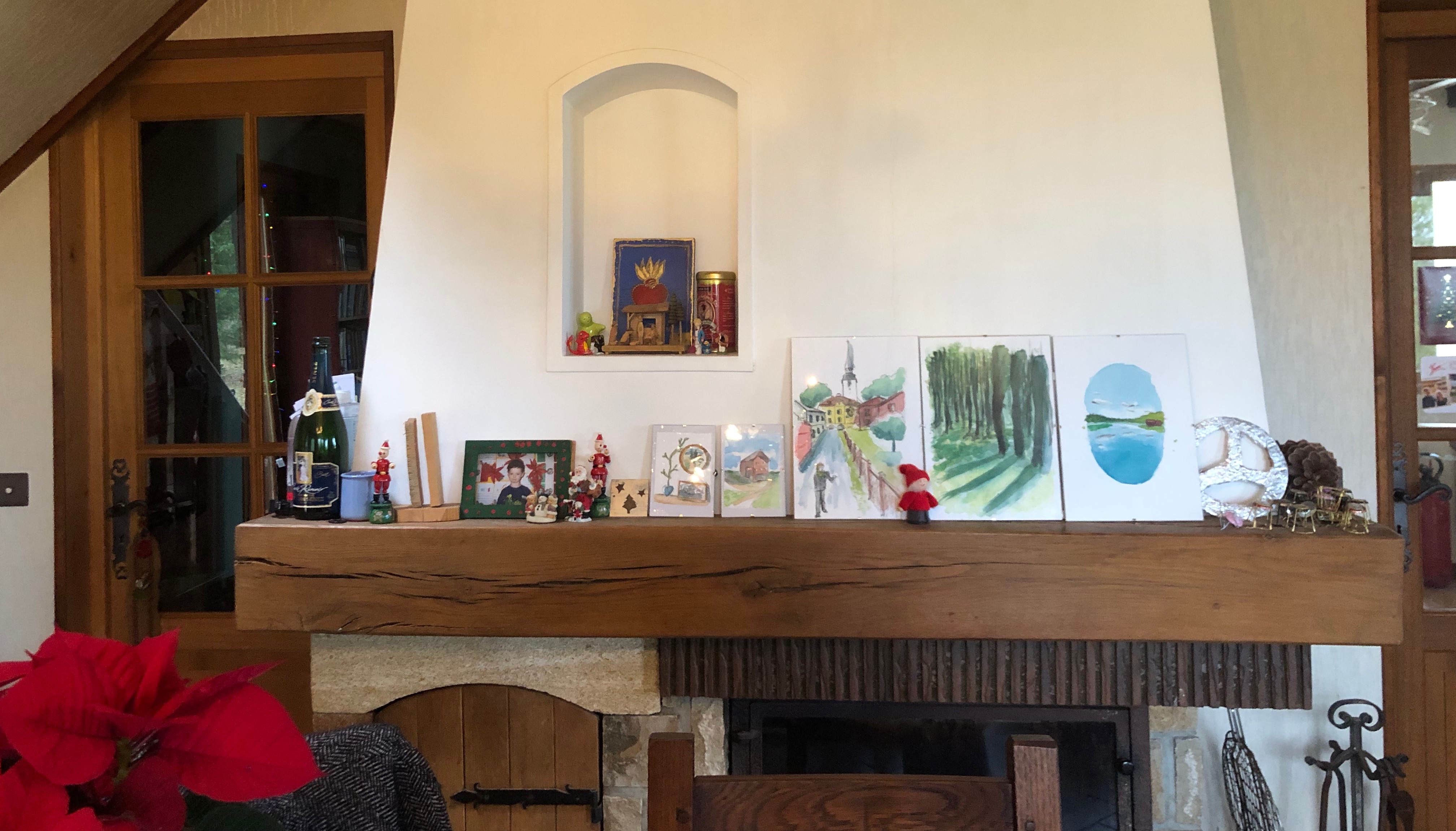 We don’t emphasize gift-giving in our home, which removes a lot of the unnecessary stress leading into the holidays. But there are usually a couple of special gifts that are given. This year Diane was very happy to receive her very first Christmas stocking (“We didn’t have them, it’s not really a French thing,” she explained.) And I was really happy to receive some beautiful watercolors painted by my older son, created from images he captured in photographs when we were in Sweden this summer. What a wonderful way to keep the memories of a wonderful time spent in SmĂĄland; and beautiful additions to the artwork in our home.