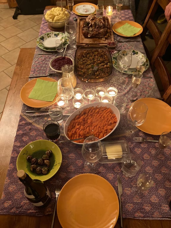 One week later it was time to celebrate Thanksgiving in France. And while it is not a holiday here, it is celebrated by most Americans who live in France, and often their French friends and friends from other places are invited to join in the festivities as well.