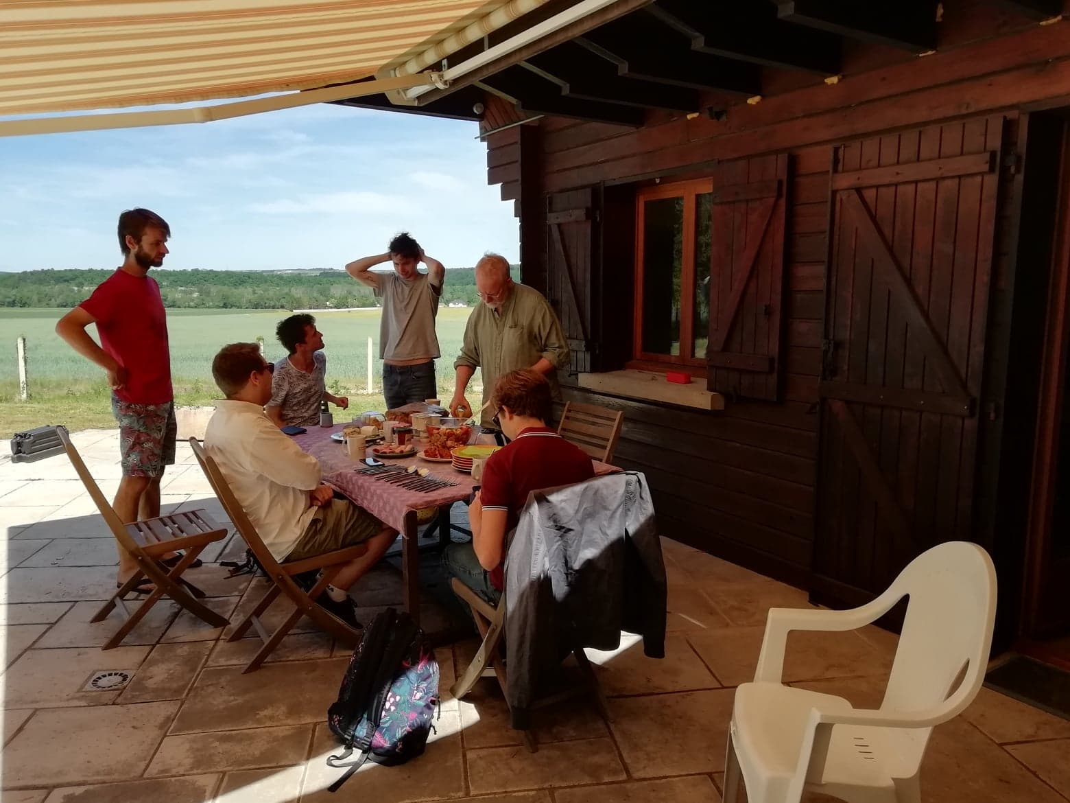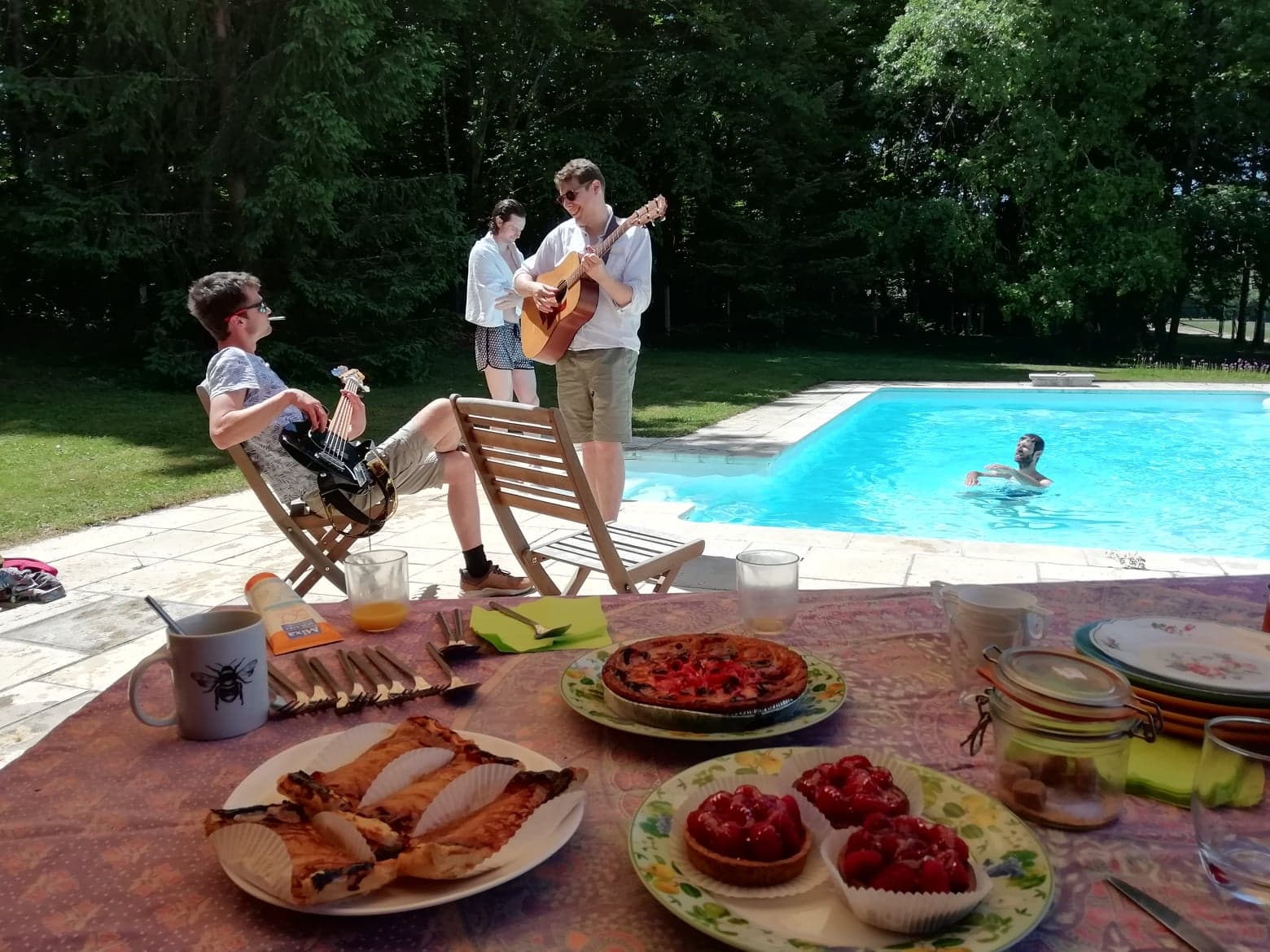 The next morning we welcomed the members of the band to brunch at our home. The weather is not always perfect in northern France but this just happened to be a day in May that could not have been more perfect. For me one of the highlights of the day was a spontaneous singing of “I’ll Fly Away” with banjo, guitar, and surprisingly (delightfully!) even a trumpet accompaniment. One of those magic moments that just happens, when you are really really lucky…