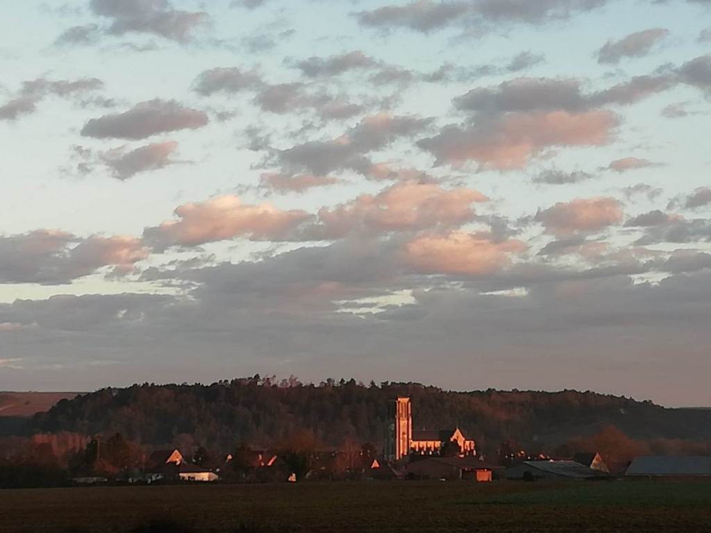 By the time we got to Essoyes, the weather finally became a bit more typical of the season. We still had a wonderful time–in addition to the required (of course!) visit to the Renoir home and interpretive center in Essoyes, we visited a couple of nearby sites of interest that I had never been to: The Crystal Museum in Bayel, and the former abbey/now prison at Clairvaux. (A word to the wise: the entrance to the museum and tour of the former abbey is to your right as you come out of the visitor parking lot. That is where you want to go, not to the friendly-looking French flags to your left: that is the entrance to the maximum security prison, and you definitely don’t want to go there. The guards inside were quite surprised to see my brother-in-law confidently approach those heavy metal doors looking for a way inside. Fortunately, a quick explanation in French that we were looking for “l’abbaye” convinced them that we were harmless, just a bit confused, and they kindly redirected us.)